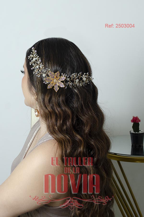 Hermoso tocado de novia alambrismo color plata, cristal, hojas espejo plata