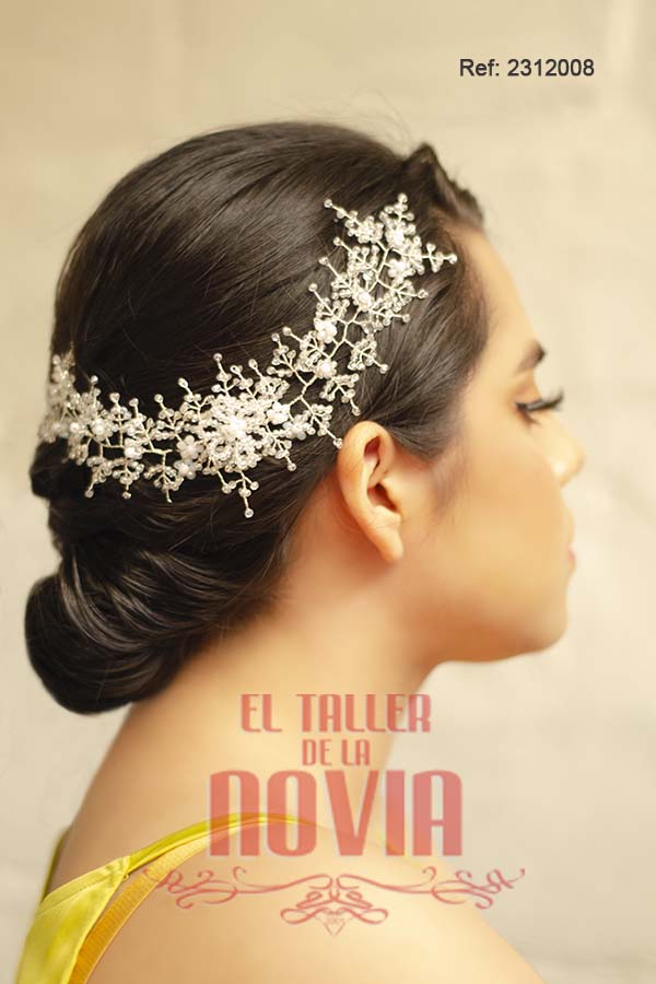 Hermoso tocado de novia alambrismo hilo dorado, cristal, cristal sintético y flores doradas