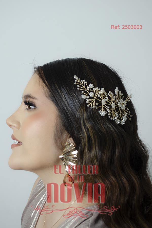 Tocado alambrismo plata flor blanca 22 X 6 CM Ref 2503002