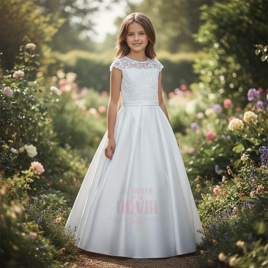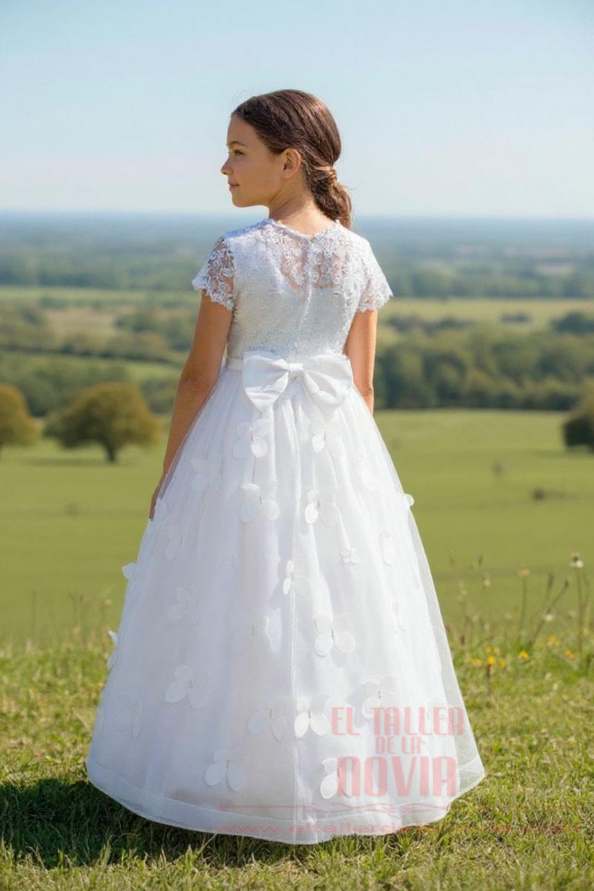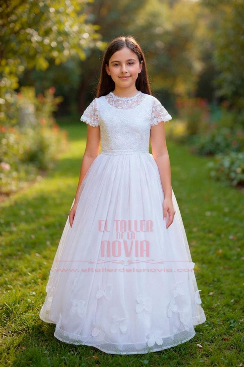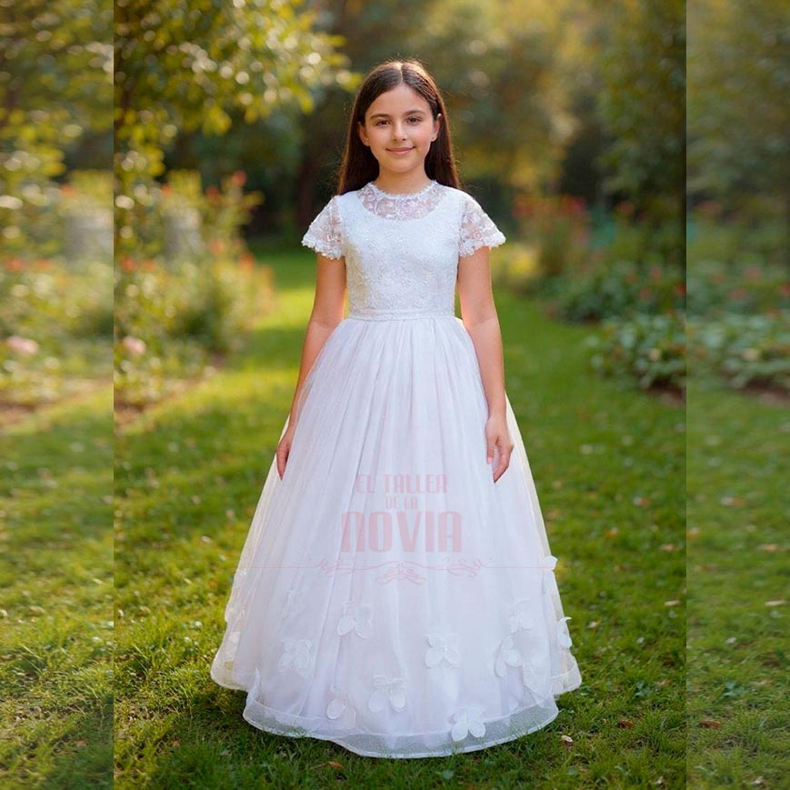 Vestido primera comunión blusa bordada, falda tul mariposas Talla 8 y 10